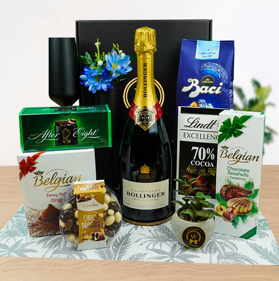 A glass of champagne is one of the greatest simple pleasures in life – the pop of the cork and the rush of bubbles always make you feel like you’re celebrating. There is no better way to celebrate a special occasion than with our huge selection of sparkling wine and champagne hampers. It doesn’t matter what the occasion is, a gorgeous hamper with a bottle of Bollinger Champagne bubbles will be sure to make it feel special.