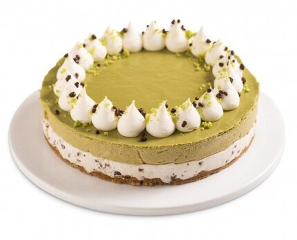 This luxurious cake begins with a crunchy butter crust base, layered with smooth vanilla cream and rich chocolate chunks. It’s then crowned with a generous spread of velvety pistachio cream and coated in white chocolate pistachio glaze – a beautifully balanced creation that’s as stunning as it is delicious.