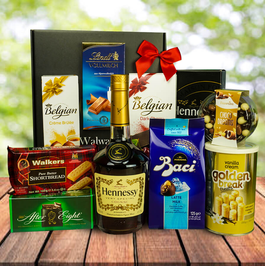Indulge in Hennessy Delight, where Hennessy V.S Cognac meets luxurious chocolates. Experience the allure of After Eight, Baci, Belgian Bonbons, Lindt, and Belgian Chocolate Bars, crafted to captivate your taste buds.